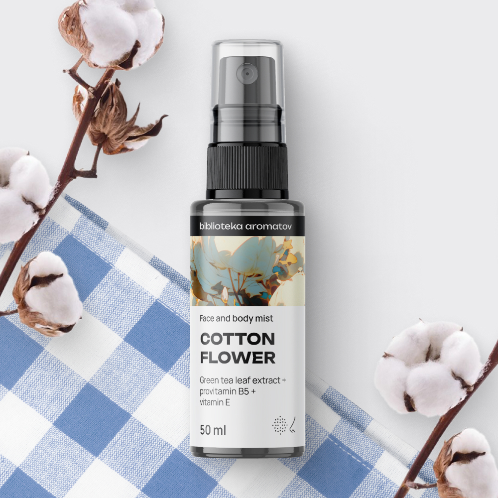 Хлопчатник — удивительное растение с крупным цветком, похожим на бабочку, чья жизнь прекрасна, но так коротка. Растение цветёт всего один день, зато успевает поменять цвет. Распустившись утром, нежно-кремовый цветок хлопка понемногу краснеет, увядает, а вечером закрывается. На следующее утро лепестки приобретают насыщенный фиолетовый цвет и опадают. Затем на месте цветка появляется знаменитая ватная подушечка. Наши парфюмеры настолько очаровались трогательной историей хрупкого цветка, что решили воссоздать его аромат и сохранить навсегда. Тонкий с пудровыми нотами, прозрачный, как утренняя дымка.