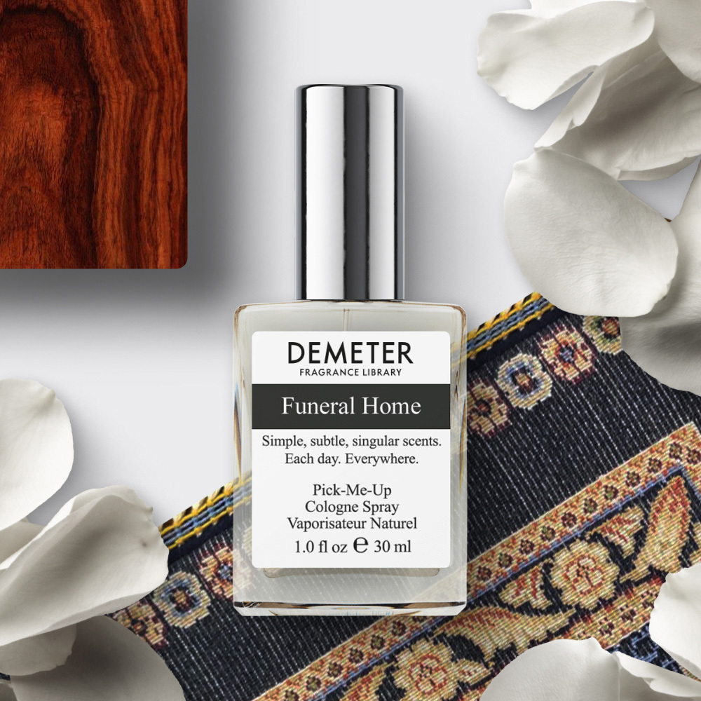 Изначально аромат должен был называться Flower Show, представляя собой смесь классических белых цветов: лилий, гвоздик, гладиолусов, хризантем, с нюансом красного дерева и восточным ковром. При создании аромата друг владельца компании случайно зашёл в офис и воскликнул: «Он пахнет, как на похоронах моего деда… назовите его Funeral Home!», что Demeter и сделал.